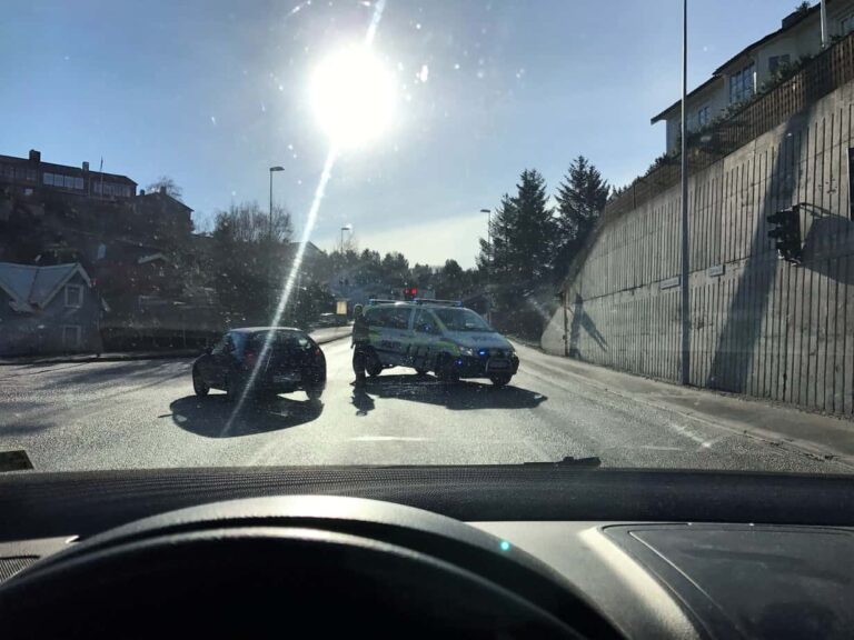 Semi-trailer sperrer hovedveien
