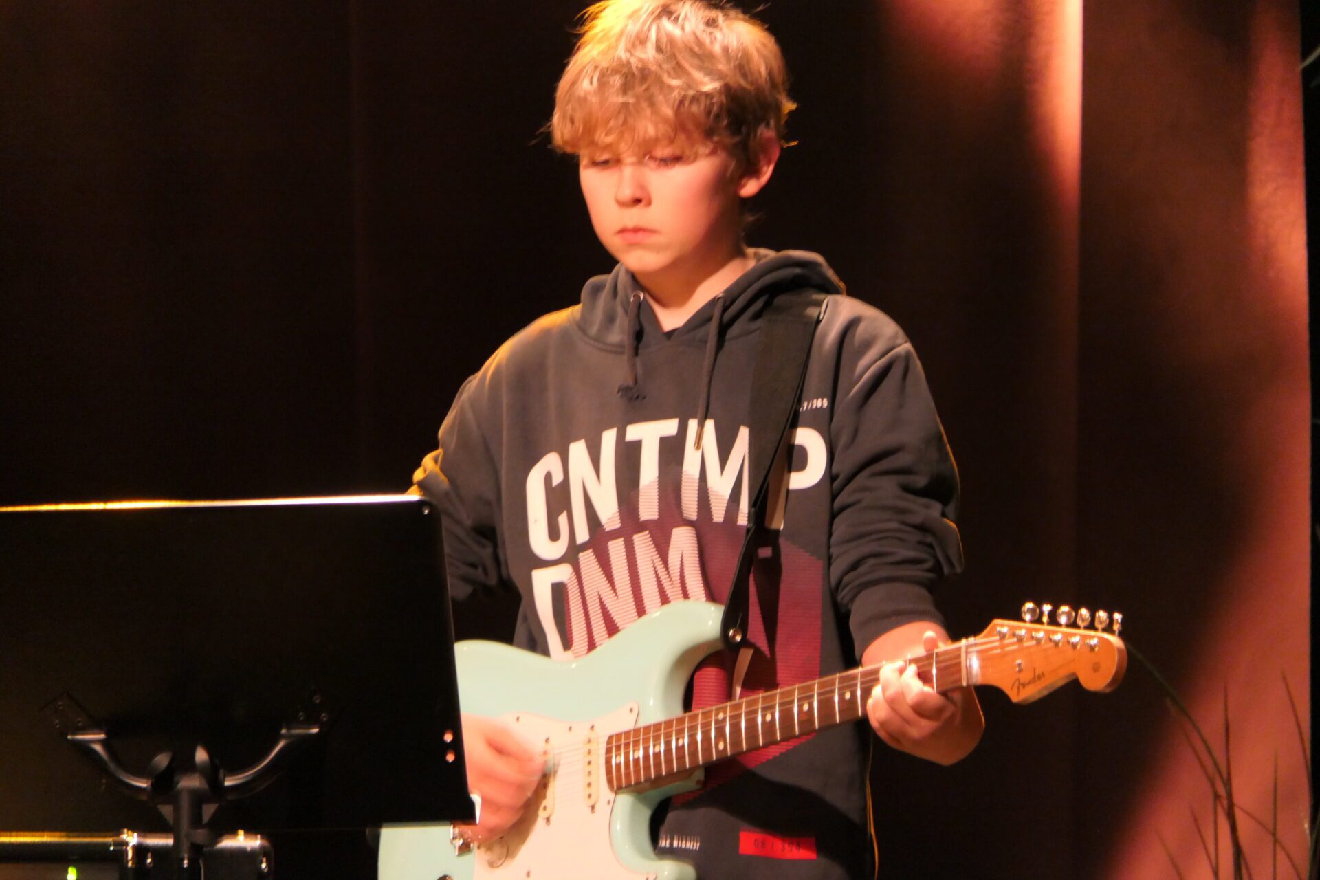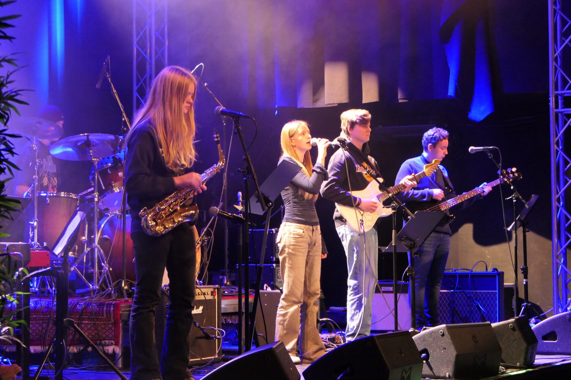 Men først tilbragte kulturskoleelevene hele dagen sammen for å legge siste hånd på verkene, før de entret Byscenen i Kulturfabrikken. På dagen fikk de god veiledning av Skjalg Raaen som er kjent fra Åge Aleksandersens Sambandet.